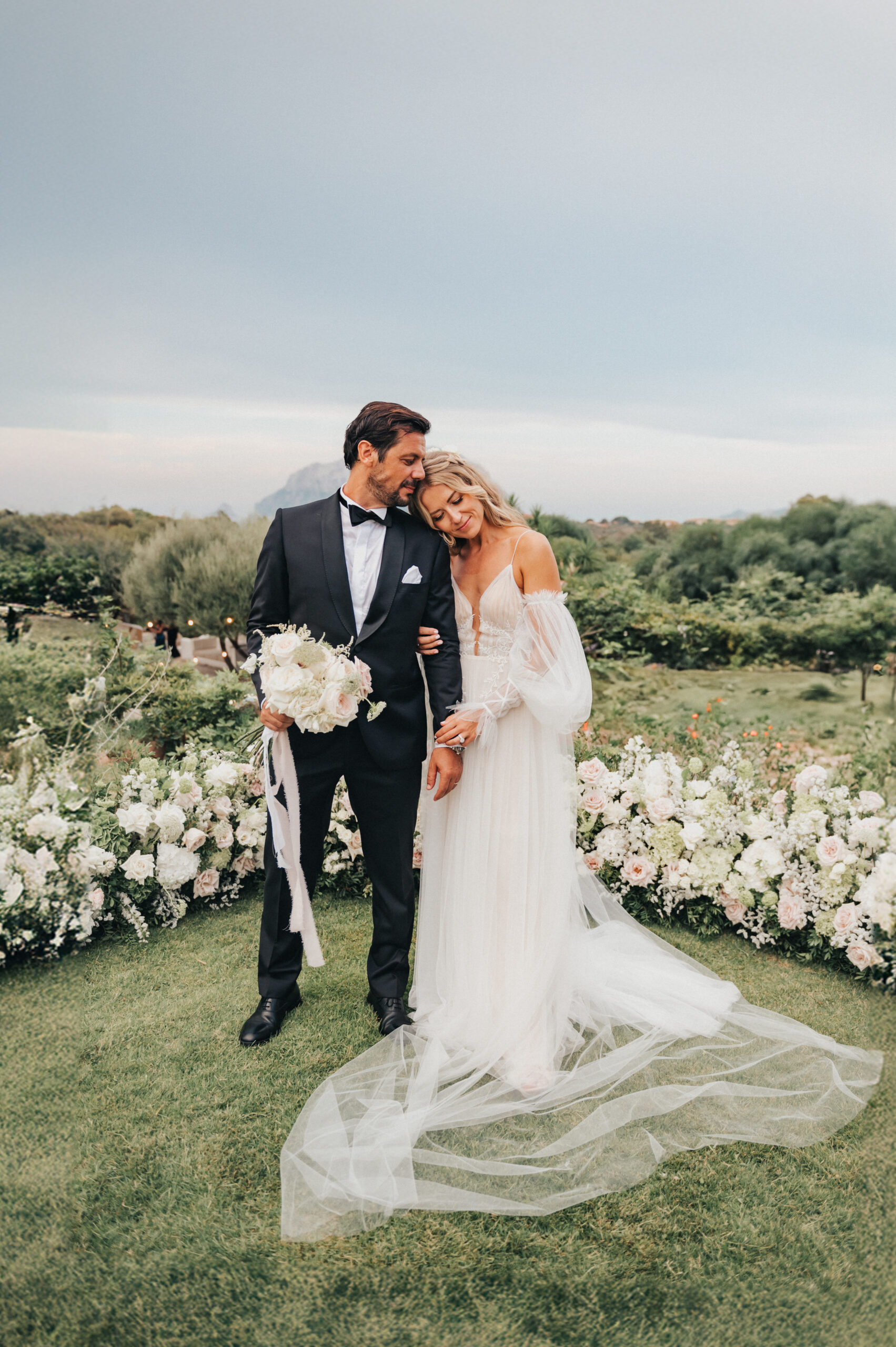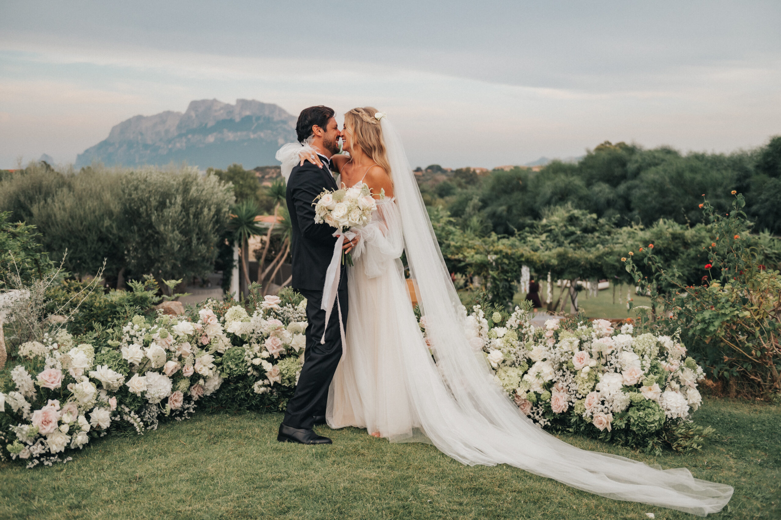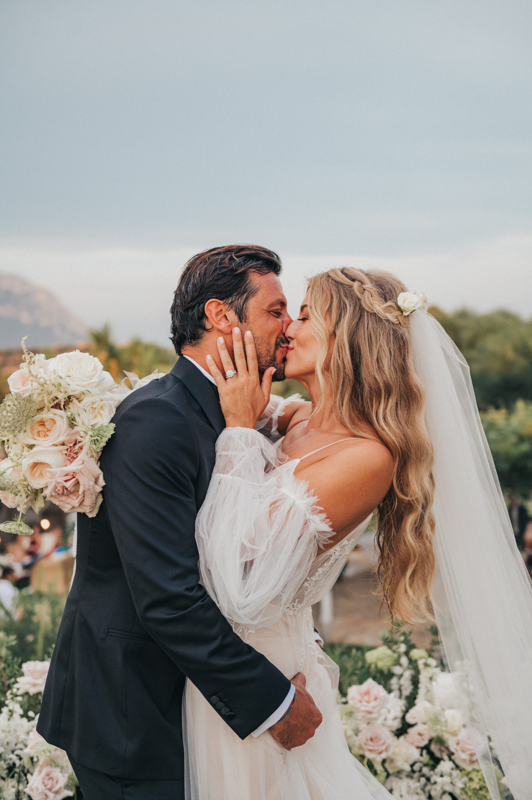 Das Hotel liegt auf einem Hügel mit Blick auf das türkisfarbene Meer der Costa Corallina und bot die perfekte Kulisse für eine elegante Feier unter freiem Himmel.