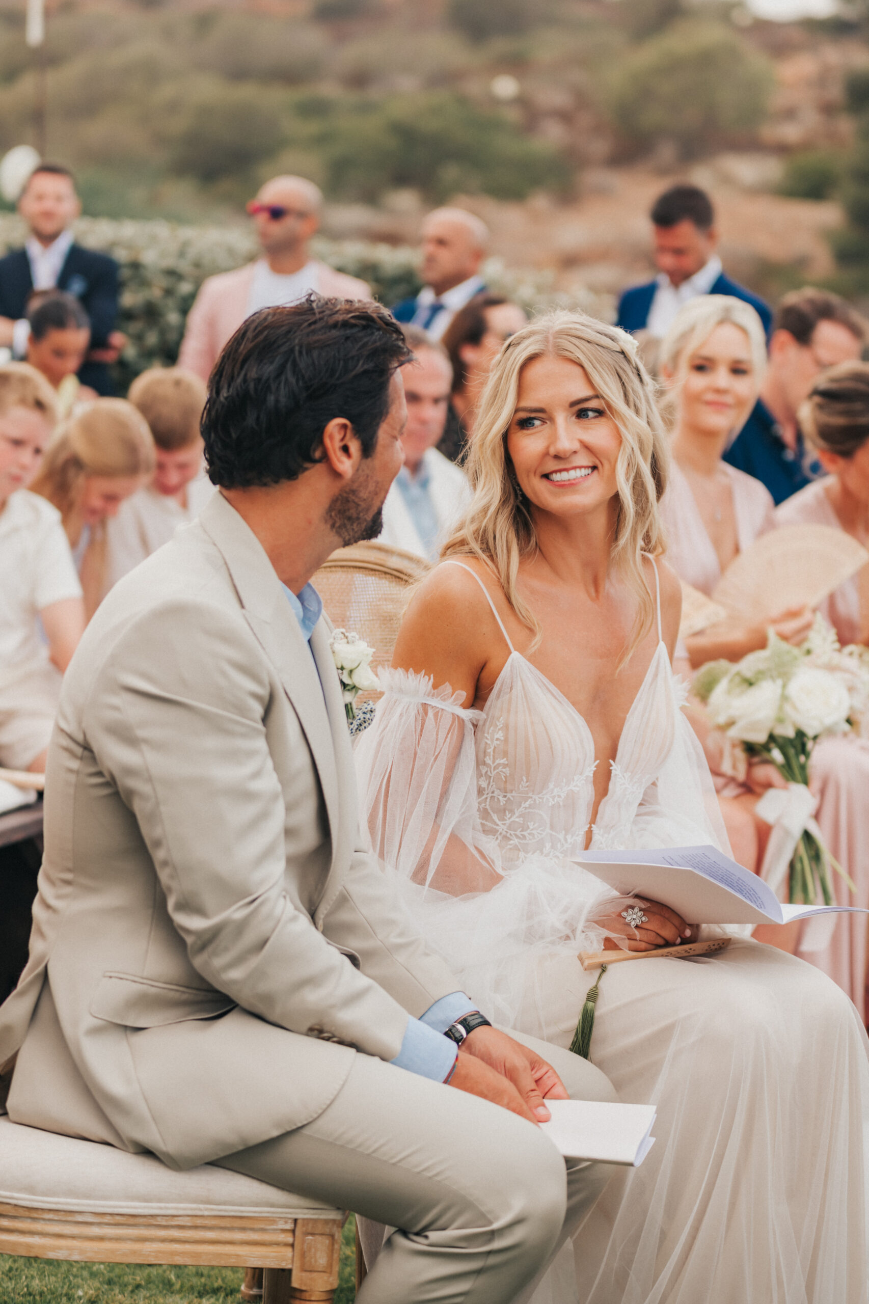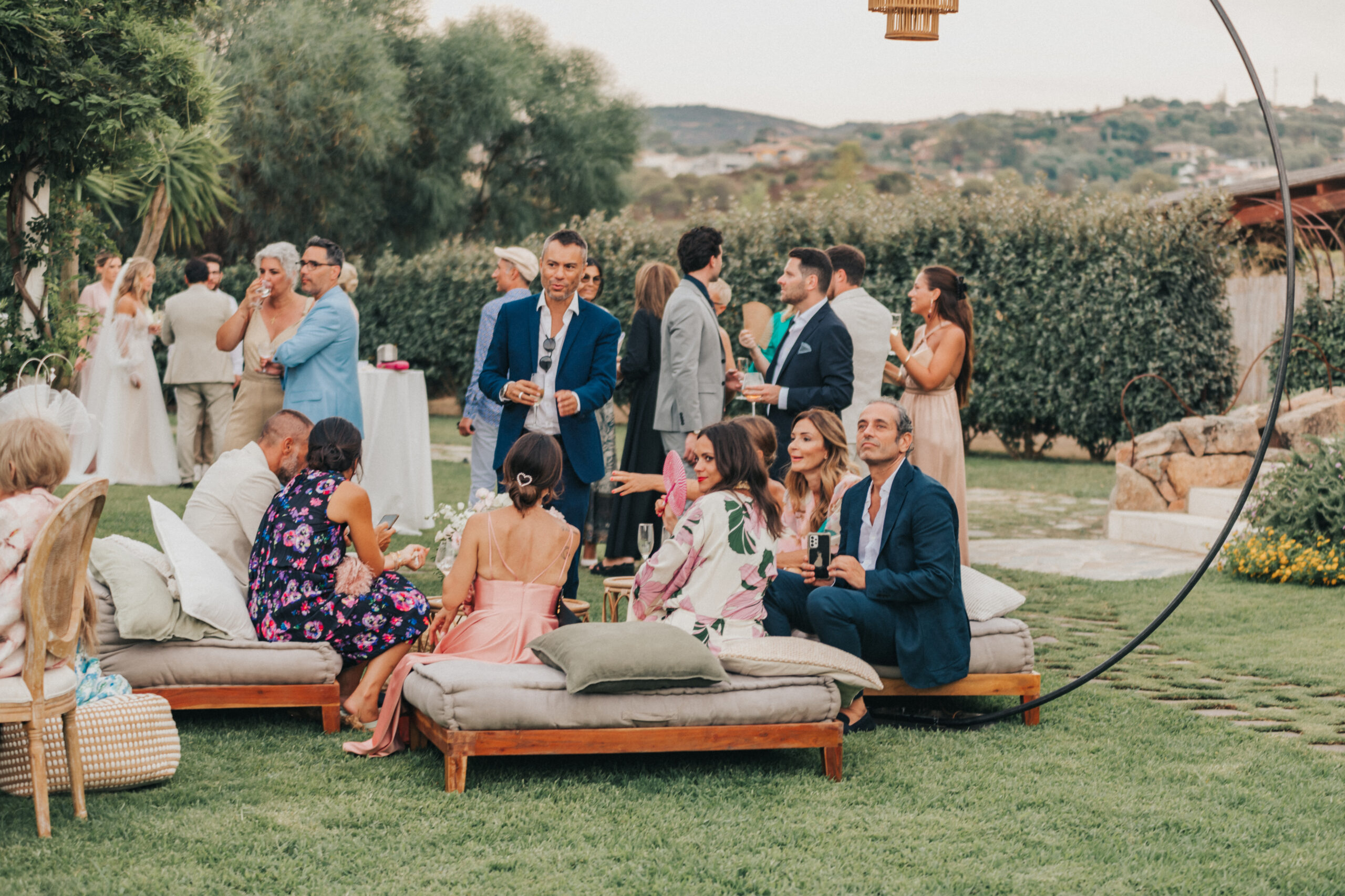 Nach der Trauung genossen die Gäste ein festliches Dinner mit Meerblick, begleitet von herzlichen Gesprächen, Musik und vielen unvergesslichen Momenten. Später wurde bis in die Nacht hinein getanzt und gefeiert – ein Tag voller Liebe, Lebensfreude und Schönheit, der die Magie einer Destination Wedding auf Sardinien perfekt widerspiegelt.