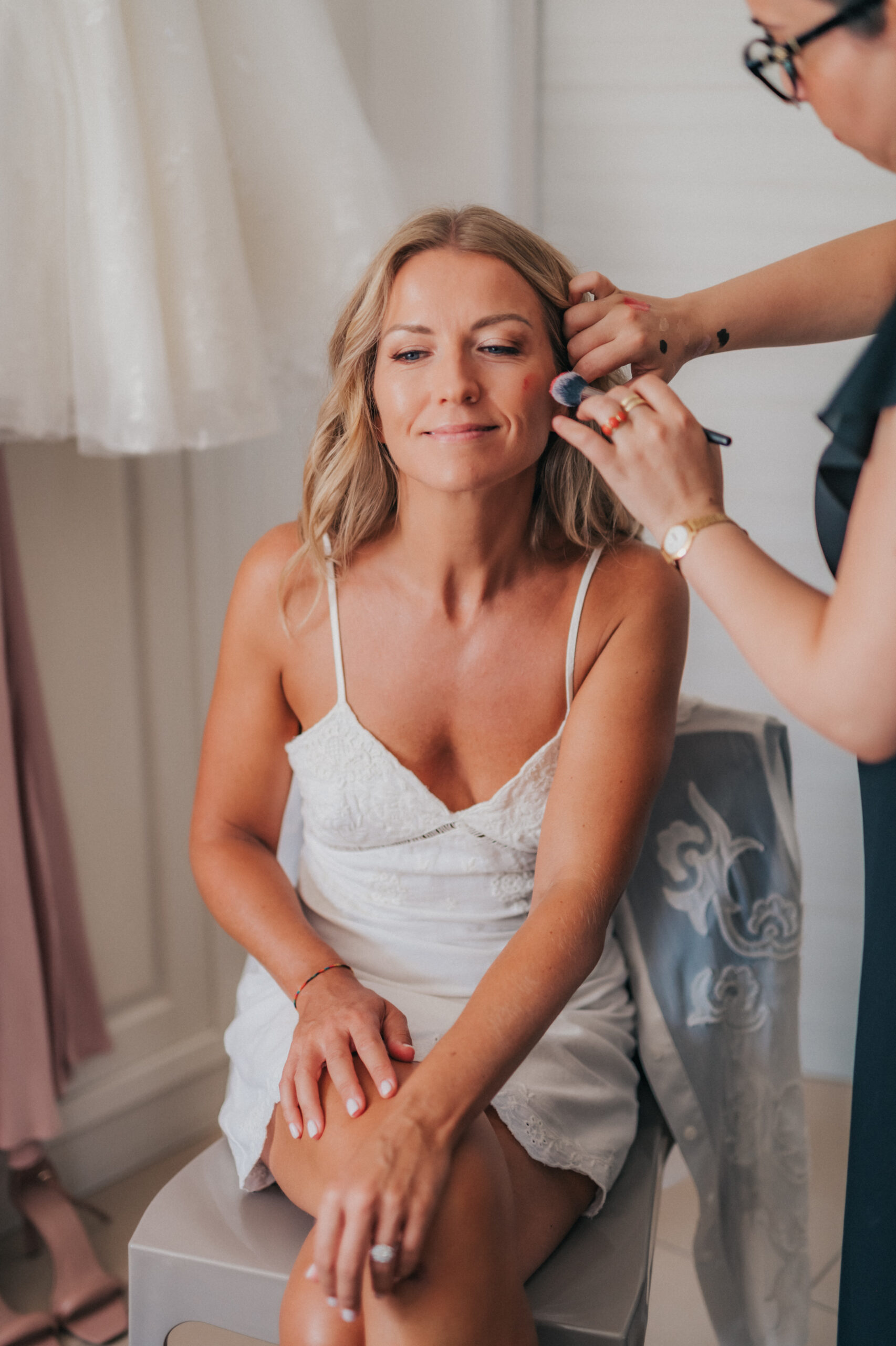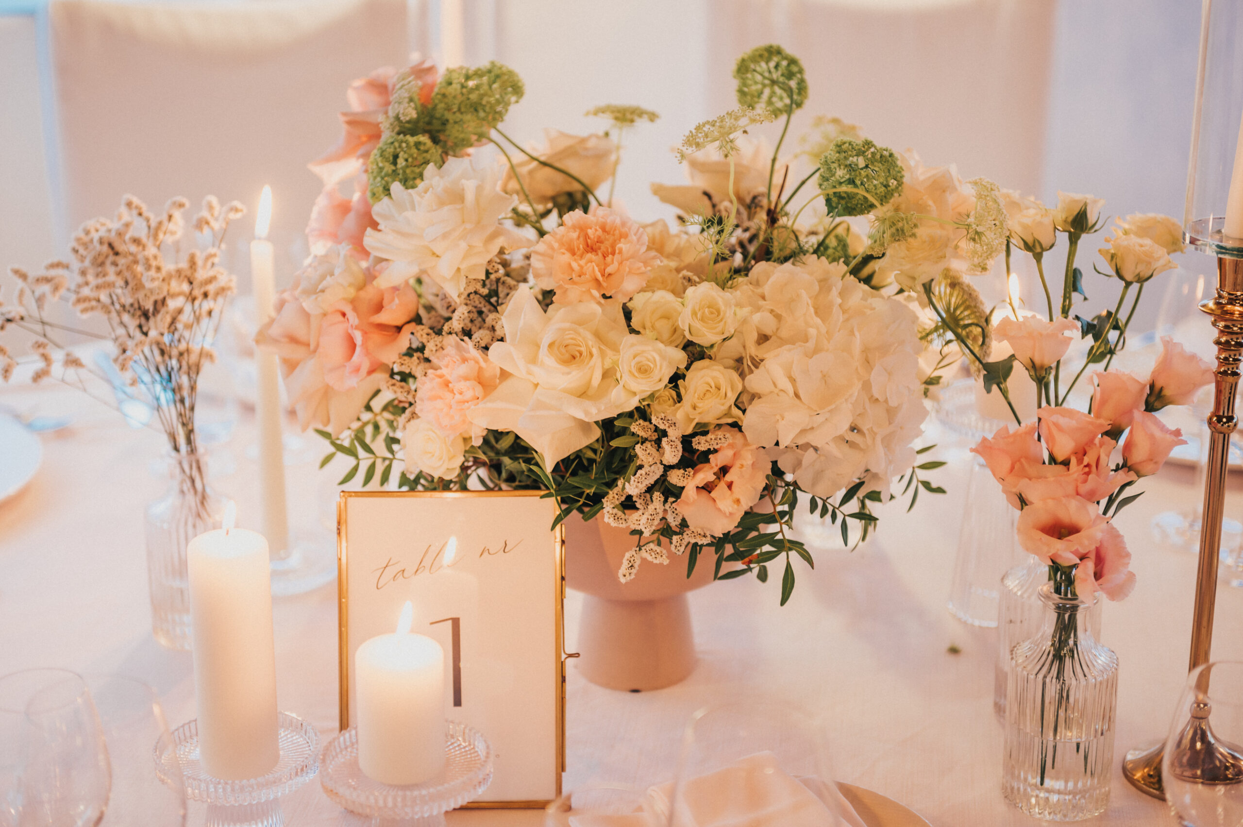 Das Brautkleid war atemberaubend – fließend, elegant und zeitlos, passend zu der warmen, sommerlichen Stimmung und der natürlichen Eleganz des Ortes. Jedes Detail war liebevoll ausgewählt: die hellen Farben, die feinen Blumenarrangements und das Zusammenspiel von Natur und Eleganz machten den Tag perfekt.
